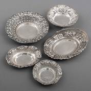 Vijf BWZG Djokja schaaltjes, waaronder één met hengsel, gewicht 411 gram, grootste Ø 16,5 cm