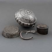 BWZG spangarmband, ovaal dekseldoosje en een betelnotenhouder, gewicht 170 gram, daarbij: een losse onedele Oosterse deksel