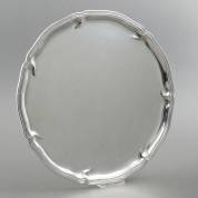 Rond geschulpt 3e gehalte zilveren blad, gemerkt: A. Roesner, Dresden, 20e eeuw, gewicht 1010 gram, Ø 38 cm