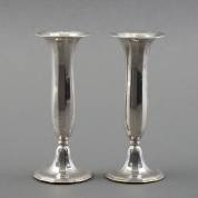 Paar 2e gehalte zilveren gekante vaasjes, meester: Koninklijke Kempen, Begeer & Vos, Utrecht, 1923, brutogewicht 198 gram, 16 × Ø 6 cm -deukjes-