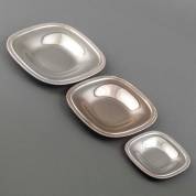Drie vierkante 2e gehalte zilveren blaadjes met geribbelde rand, Duitsland, gewicht 426 gram, grootste 22,5 × 22,5 cm -de grootste met inscriptie aan achterzijde-