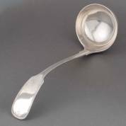 2e gehalte zilveren soepdienlepel, filet met accolade, meester: J.M. van Kempen & Zonen, Voorschoten, 1861, gewicht 185 gram, 26 cm