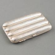 1e gehalte zilveren sigarenkoker met gegraveerd decor, meester: Samuel L. Levi, Birmingham, Engeland, 1902, gewicht 155 gram, 13,5 × 8 cm