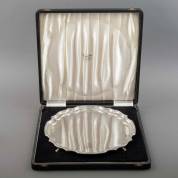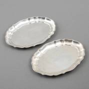 Twee ovale geschulpte 2e gehalte zilveren presenteerschaaltjes, meester: M.H. Wilkens & Söhne, Bremen, 20e eeuw, gewicht 249 gram, 20 × 14 cm