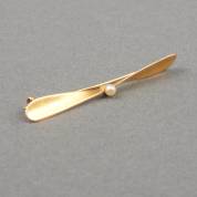 14kt gouden pin gezet met boutonparel, gewicht zonder onedel sluitmechaniek, 1,2 gram, 7 cm