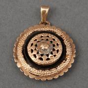 Paar 20kt gouden filigrain oorhangers gewicht 5,6 gram, 4 cm -stukje filigrain ontbreekt uit een rozet-