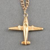 14kt gouden gourmet schakelcollier met S-sluiting, waaraan een 14kt gouden hanger in de vorm van een vliegtuig, gewicht 8,6 gram, 46 cm