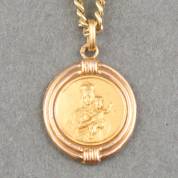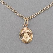 14kt gouden hanger met Heilig Hart, aan onedel gourmet schakelcollier, goudgewicht circa 0,6 gram, Ø 13 mm