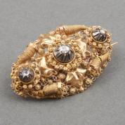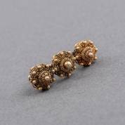 14kt gouden filigrain broche gezet met drie Zeeuwse knoopjes, gewicht 1,6 gram, 2 cm