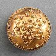 Ronde 14kt gouden broche gezet met filigrain, gemaakt van Zeeuwse keelknoop, 19e eeuw, gewicht 5 gram, Ø 2,4 cm