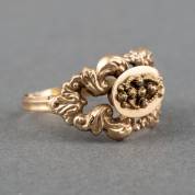 14kt gouden slagring gezet met roosgeslepen diamant in dichte gouden zetting, circa Ø 4 mm, mt. 15,75, brutogewicht 2,6 gram