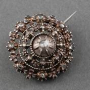 14kt gouden en 2e gehalte zilveren rozetbroche gezet met roosdiamanten in dichte zilveren zetting, brutogewicht 10,2 gram, Ø 28 mm