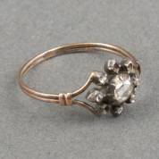 14kt roségouden en zilveren rozetring gezet met roosdiamanten, 19e eeuw, gewicht 1,6 gram, maat 17,5