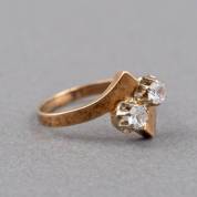 14kt gouden ring gezet met twee briljantgeslepen simuli, mt. 15,5, brutogewicht 1,8 gram