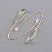 Paar 14kt gouden oorhangers waaraan briolette van prasioliet, brutogewicht 2,2 gram, 3,5 cm