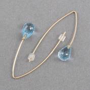 Paar 14kt gouden oorhangers waaraan briolette van topaas, brutogewicht 2,8 gram, 3,5 cm