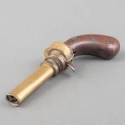 Houten en messing pistoolvormige aansteker, tweede helft 19e eeuw -niet werkend-, lengte 23 cm