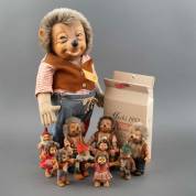 Steiff: negen mohair, vilten en kunststof poppen Mecki, en twee kleine Gucki, waarvan één gelimiteerde uitgave 01129/2000, met certificaat, uitvoering Margarete Steiff, Gingen-Brenz, Duitsland -in gebruikte staat-, grootste 57 cm