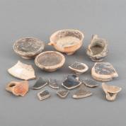 Divers archeologisch aardewerk, en diverse fragmenten daarvan, waaronder lage kommetjes, Middellandse Zeegebied, hellenistische en Romeinse periode, grootste 5 × Ø 7 cm, herkomst: oud-directeur Museum Kam, Nijmegen