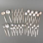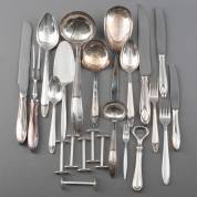 Samengesteld verzilverd bestekgedeelte met geribde heften, meester: GAB Sweden en F. Frisast Denemarken, bestaande uit: acht dinercouverts, acht dinermessen, acht dessertlepels, en vierdelig diencouvert, dinermes 19,5 cm