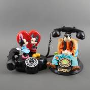 Twee kunststof geanimeerde telefoons voor de vaste lijn, Goofy, en Mickey en Minnie Muis, uitvoering Telemania in opdracht van Disney, USA, jaren '90, 23 cm