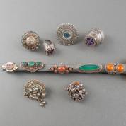 Tien BWZG etnische ringen, waarvan acht gezet met natuursteen, Noord-Afrika, India, brutogewicht 230 gram, grootste ring 5 cm