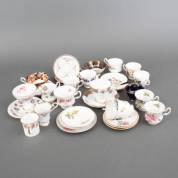 18 porseleinen kop-en-schotels met diverse decors en vergulde rand, waaronder uitvoering Royal Albert, Engeland, 20e eeuw