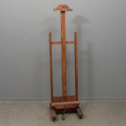 Houten schildersezel op wieltjes en met zwengel, eerste helft 20e eeuw -gebruikssporen-, maximale klemhoogte 156,5 cm
