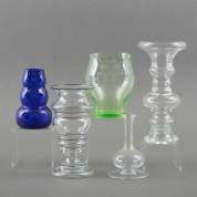 Vijf diverse glazen vaasjes, waaronder ontwerp Chris Lanooij en Dirk Andries Copier, grootste vaas 20 cm