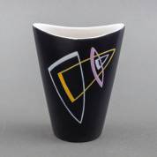 Zwarte vaas met polychroom decor, 'Ruimte', model 1218M, ontwerp Floris Meydam, uitvoering Regina, Gouda, 1952, 5 × 12 × 15 cm