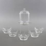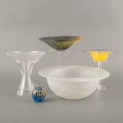 Zesdelig glazen serviesgedeelte, waaronder: vijf vingerkommen en een pot, ontwerp: Andries Dirk Copier, uitvoering: glasfabriek Leerdam, grootste 18 × Ø 12 cm
