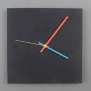 Vierkante zwarte metalen wandklok met gekleurde wijzers, uitvoering Junghans, jaren '80, 25 × 25 cm