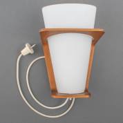 Gebogen multiplex wandlamp met witte glazen kap, model NX 41, ontwerp Louis Kalff, uitvoering Philips, jaren '50, 27 × 18 × 15 cm