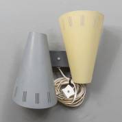 Tweelichts stalen wandlampje met grijs en lichtgeel kapje, ontwerp Louis Kalff, uitvoering Philips, midden 20e eeuw, 28,5 × 27 × 11 cm