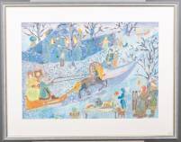 Wit-Russische School: 'Kaljada', gouache op papier, niet gesigneerd, verso gestickerd: 'Stsjemerova Hadezdja, 13 jaar', 42 × 60 cm