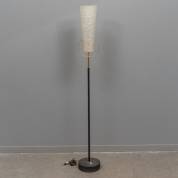 Staande metalen vloerlamp met goudkleurige boog en cristalux kap, ontwerp Jean Gandelin, jaren '50 -chips van kap-, hoogte 149,5 cm