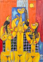 Pieter Klazen (1949), 'Het Land', acrylverf op papier, l.o. gesigneerd en gedateerd 2006, 60 × 57 cm