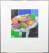Pieter Klazen (1949), stilleven met fruit, acrylverf op papier, l.o. gesigneerd en gedateerd 2002, 39 × 37 cm