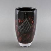 Zwarte glazen vaas met rode en grijze decoratie, uitvoering Daum, Nancy, Frankrijk, 18,5 × Ø 10,5 cm