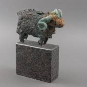 Bronzen beeld: ram, op hardstenen basement, niet gesigneerd, hoogte inclusief basement 34 cm