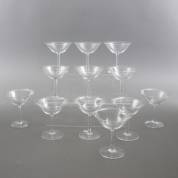 Tien champagnecoupes, model D, ontwerp K.P.C. de Bazel, uitvoering Glasfabriek Leerdam, 1917 -defecten-, 12 × Ø 11 cm