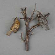 Weens bronzen beeld in de vorm van twee roodborstjes op tak, onduidelijk gemerkt op de staart, circa 1900 -één roodborstje afgebroken-, 18 × 16 × 12 cm