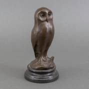 Naar Miguel Fernando 'Milo' Lopez (1955), uil, brons, gesigneerd, gietersmerk J.B. Deposée, op zwart natuurstenen basement, afmetingen inclusief basement 25 × Ø 12 cm