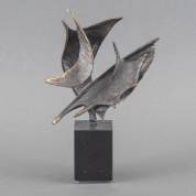 Bernadette Leijdekkers (1949), 'Wind in de zeilen', brons, gemonogrammeerd, op natuurstenen basement, afmetingen inclusief basement 23 × 13 × 8 cm