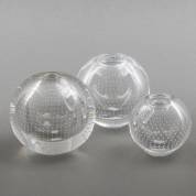 Drie blank glazen spijkervaasjes, in diverse maten, ontwerp Andries Dirk Copier, uitvoering Glasfabriek Leerdam, grootste 9 × Ø 8 cm