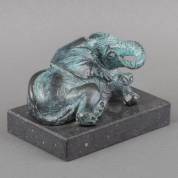 Hetty Heyster (1943), liggend olifantje, gepatineerd brons, niet gesigneerd, op zwart marmeren basement, afmetingen exclusief basement 10 × 18 × 12 cm