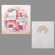 Mirjam Tiggeloven (hedendaags), twee schilderijen: 'Quiltpalet' en 'Je kijkt terug en ziet hoe je je weg ging', beide olieverf op doek, beide r.o. gemonogrammeerd, 70 × 70 cm en 60 × 50 cm
