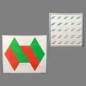 Twee werken: Bob Bonies (1937), compositie in rood en groen, zeefdruk 45/190, r.o. gesigneerd en gedateerd '67 -enkele vlekjes-, 60 × 70 cm, en Peter Struycken (1939), geometrische kleurencompositie, zeefdruk, l.o. gemonogrammeerd en gedateerd '68, 49 × 49 cm