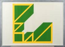 Jan Dibbets (1941), geometrische compositie in groen en geel, zeefdruk 44/55, r.o. gesigneerd en gedateerd 1966, 47 × 62 cm