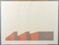 Erik Roos (1938-1994), bakstenen fantasie-architectuur, kleurpotlood op papier, niet gesigneerd, 48 × 64 cm